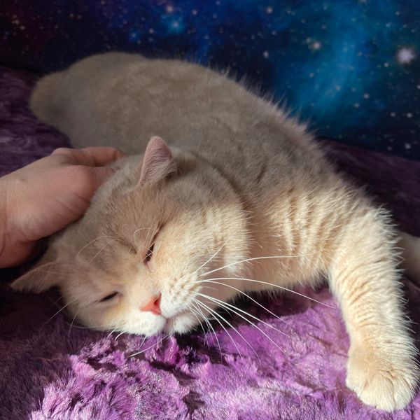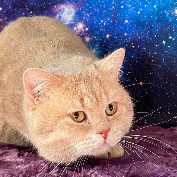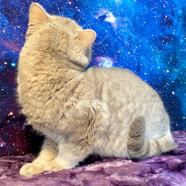 Frances is our upcoming new King. He is a Standard (dwarf / short legged) 75% British Shorthair, English Muffin. He is such a quiet, mellow, affectionate little guy! We can not wait to see the kittens he’ll produce!!
